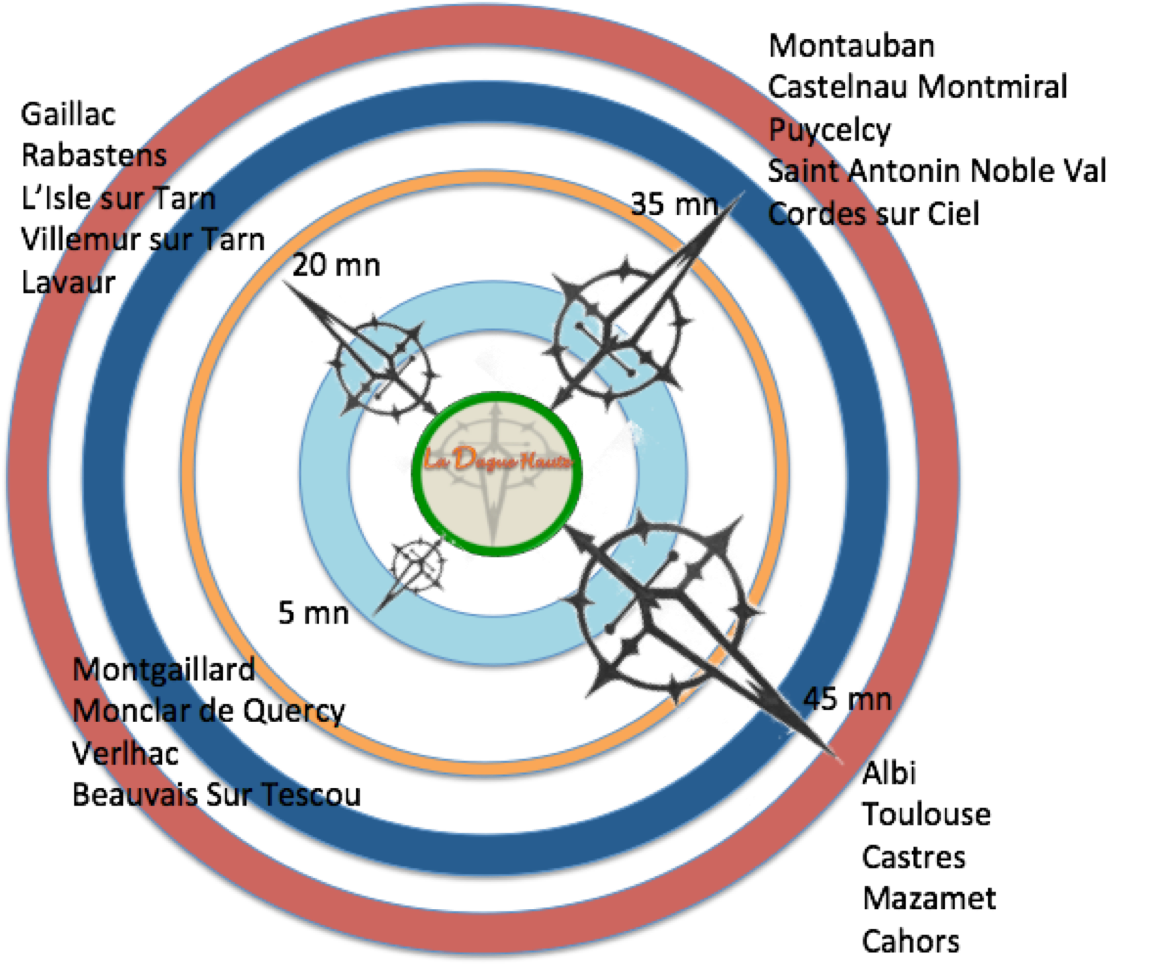 À proximité de sites emblématiques : Salvagnac, Gaillac et son vignoble, Albi, Montauban et Toulouse, la Dague Haute est idéalement située pour un séjour entre nature, bastides et terroir.